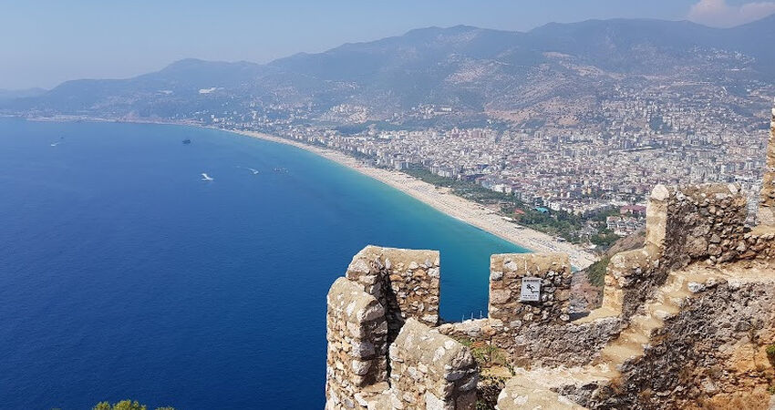 Surların tepesinden Alanya manzarasına bakıyor, Selçuklu izlerini takip ediyoruz. Rehberimizin anlatımıyla tarihe yeniden tanıklık ediyoruz.