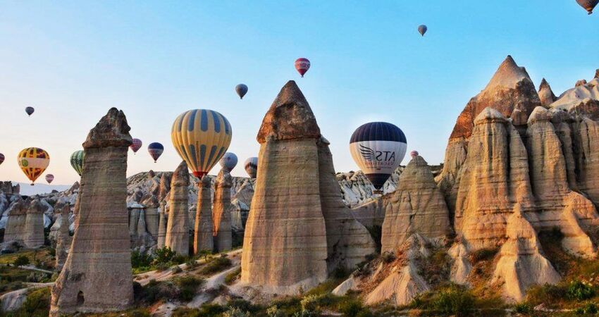 Siz değerli misafirlerimizle buluşmamızın ardından, masalsı bir dünyaya açılan kapımız olan Kapadokya'ya doğru yolculuğumuza başlıyoruz. Avanos Çanak & Çömlek Atölyeleri Avanos, Kızılırmak’ın getirdiği kırmızı killer sayesinde yüzyıllardır çanak-çömlek yapımıyla ünlüdür. Burada ustaların geleneksel yöntemlerle çamuru şekillendirmesini izleyebilir, isterseniz kendi çömleğinizi yapmayı deneyebilirsiniz. Bu zanaat, Hititler döneminden beri Avanos’ta devam eden bir gelenektir. Avanos Onyx Taş Atölyesi Kapadokya bölgesine özgü yarı değerli taşlardan biri olan Onyx, genellikle süs eşyaları ve takılarda kullanılır. Atölyede taşın işlenme sürecini görebilir, hediyelik ürünlerden alışveriş yapabilirsiniz. Kızılırmak Asma Köprü Türkiye’nin en uzun nehri olan Kızılırmak üzerindeki bu köprü, Avanos’un simgelerinden biridir. Burada harika fotoğraflar çekebilir, nehir manzarasının keyfini çıkarabilirsiniz. Paşabağları (Rahipler Vadisi) Burası, peri bacalarının en yoğun ve en etkileyici olduğu yerdir. Birçok kaya oluşumu, “şapkalı” görüntüsüyle doğanın sanat eseri gibidir. Zamanında keşişler burada inzivaya çekilmiştir. Dervent Vadisi (Hayal Vadisi) Doğal kaya oluşumlarının farklı canlılara benzediği bu vadi, ziyaretçilere adeta bir “doğa müzesi” sunar. En meşhuru deve şeklindeki peri bacasıdır. Fotoğraf tutkunları için en keyifli duraklardan biridir. ATV Turu( Ekstra) Kapadokya’nın büyüleyici vadilerinde adrenalin dolu bir macera! Gün batımı manzarası eşliğinde yapılan bu tur, bölgeyi farklı bir açıdan keşfetme fırsatı sunar. Öğle Yemeği – Serbest Güvercinlik Vadisi & Nazar Ağacı Vadinin duvarlarında oyulmuş güvercin yuvaları, Kapadokya’nın en sembolik manzaralarındandır. Nazar ağacına dilek dilemek, turistlerin geleneksel ritüelidir. Güvercin gübresi zamanında tarımda gübre olarak kullanılmıştır. Üç Güzeller (Ürgüp) Kapadokya’nın simgesi haline gelen, yan yana duran üç peri bacasıdır. Efsaneye göre bu taşlar, bir prenses ve ailesini temsil eder. Fotoğraf molası için ideal nokta. Ürgüp Dizilerinin Çekildiği Konaklar Birçok Türk dizisine ev sahipliği yapan tarihi taş konakları dışarıdan görüyoruz. Bölgenin sivil mimarisine dair güzel örnekler sunar. Uçhisar Kalesi – Panoramik Fotoğraf Molası Kapadokya’nın en yüksek noktası olan kale, tüm vadilere hakim muhteşem bir manzara sunar. Stratejik önemi nedeniyle Roma döneminden beri kullanılmıştır. Kaymaklı Yeraltı Şehri Kapadokya’nın en geniş yer altı şehirlerinden biridir. Binlerce insanın savaş ve baskın dönemlerinde yaşadığı bu şehir; tüneller, kilerler, ahırlar ve ibadet alanlarıyla dikkat çeker. 8 kata kadar indiği tahmin edilir, ama yalnızca ilk 4 katı ziyarete açıktır. Akşam Yemeği- Geceleme Kapadokya otelimizde.