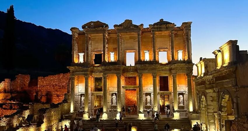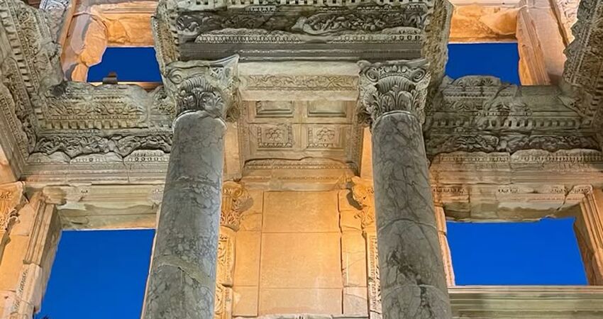 Akşam saatlerinde ışıklar altında büyüleyici Efes Antik Kenti’ni geziyoruz.